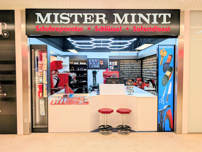 MISTER MINIT repariert Schuhe, dupliziert ihren Haustürschlüssel oder Postkastenschlüssel, schleift Ihr Messer und vieles mehr im Sofortdienst ohne lange darauf zu warten.